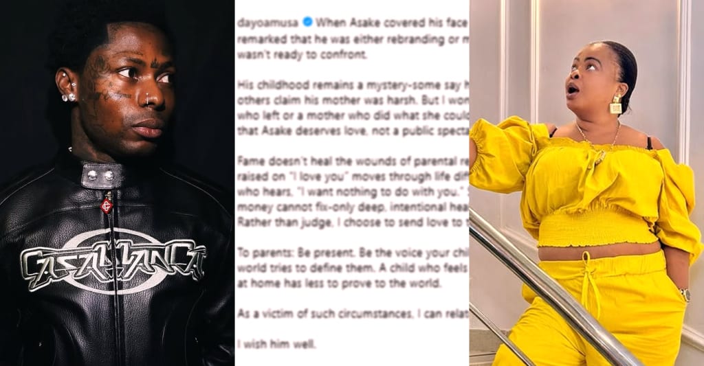 His childhood remains a mystery-some say his father was absent, others claim his mother was harsh. But I won’t judge a father who left or a mother who did what she could. What matters is that Asake deserves love, not a public spectacle.