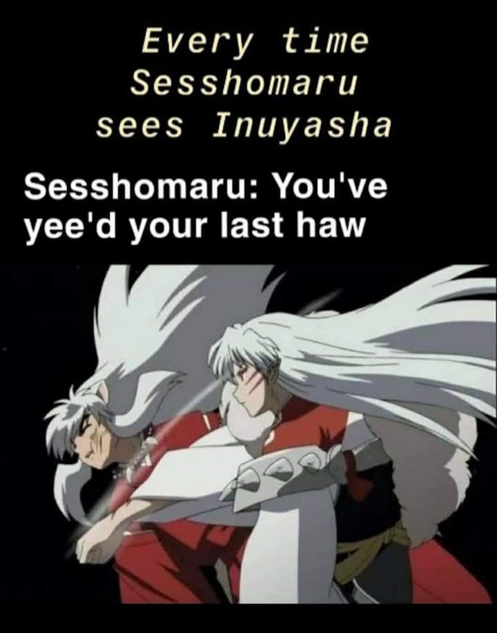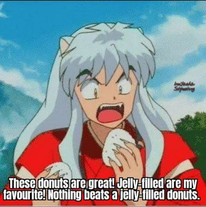 Lately, they’ve had me play Animal Crossing New Horizons, and we’ve created new outfits, flags, and town tunes inspired by InuYasha. They are a bit obsessed about InuYasha ever since they learned about it thanks to me; I mentioned once that there’s a clip in one episode (Season 2, Episode 24: "InuYasha's Soul, Devoured”) where an old man essentially makes a Life Alert reference. They burst into laughter and immediately checked it out on Netflix. I can’t tell you how many times they’ve re-watched the clip. They began to inquire all about InuYasha, asking about different characters, the storyline, other funny moments, if there are memes, etc. They randomly will start watching “InuYasha Best/Funniest Moments” videos and suddenly I’ll hear Kagome yelling at InuYasha to sit or Jaken lamenting that “there are no boats—unless, you count the ones over there, of course.” I burst into laughter each time. Our conversations about the anime led to discussing commercials and how Adult Swim aired one of Kagome and InuYasha exclaiming each other’s names; they didn’t believe it existed. Once I showed them the proof via YouTube, they were shocked speechless. Once that wore off, though, they thought it was hilarious. They love discussing InuYasha memes that the InuYasha group shares (the recent favorite is Every time Sesshomaru sees InuYasha--Sesshomaru: You've yee'd your last haw"). One post depicted the “wasp cup” from Starbucks, claiming that it was Naraku’s order, and another was about Naraku’s favorite restaurant, which prompted them to discuss on the drive home from school who would meet Naraku for lunch at the restaurant (they decided that Oogie Boogie, Weaville Underwood, and Bugsy would meet him there). They are so animated when they discuss all things InuYasha with me.
