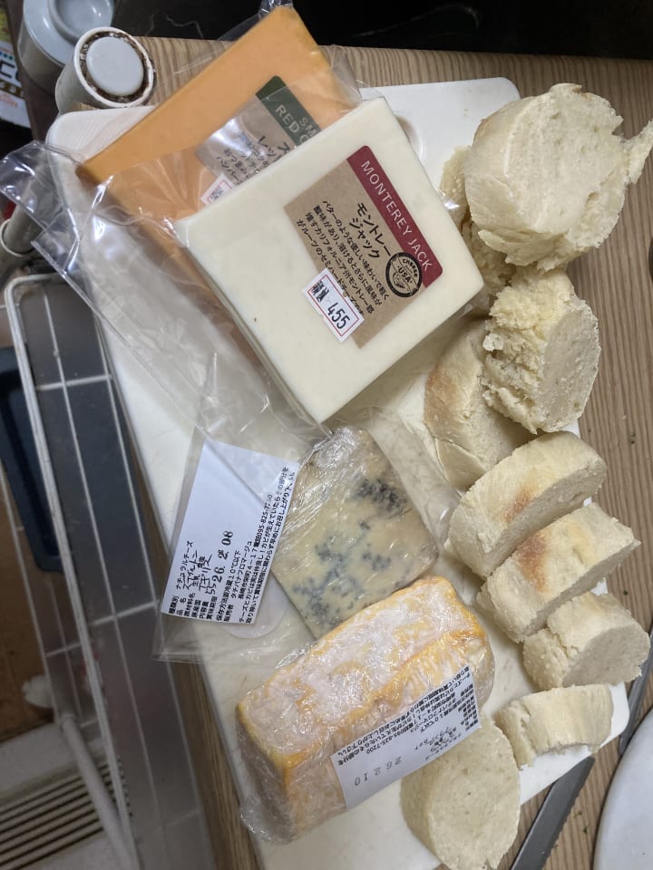 The hardest thing about living in a foreign country is food. I miss fish and chips, I miss Yorkshire pudding, I miss Tesco egg sandwiches but mostly I miss cheese. Luckily, my wife can make bread (Japanese bread is a little too fluffy and sweet) and we found a store that imports and sells cheese. We got made some bread, bought some cheese and had a little picnic in our living room.