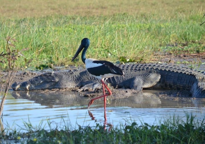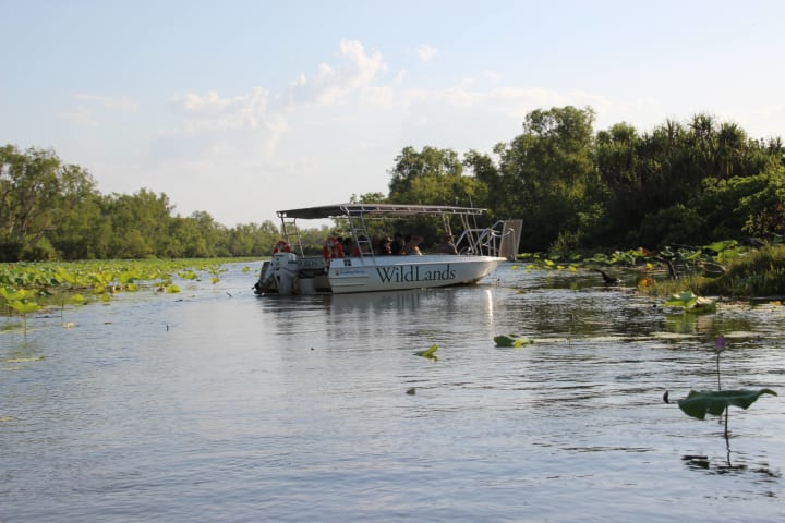 We reached our destination and Tommo and Leo put the boat into the water. All aboard and off we went, flying along on top of the water. Pink lotus lilies in flower were everywhere. Pandanus, Paperbark gums, Brolgas, Jabiru’s, and Ibis, rushing by us and such a huge variety of fish swam below us. Barramundi, Saratoga, Bream, Tarpon, Catfish, and plenty more. Plus, the Salties. Heaven on earth.