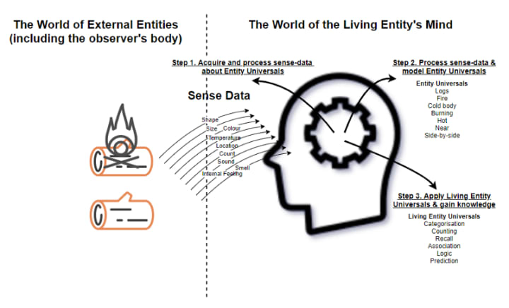 We are born with the ability to convert sensory data carrying information about the universal properties, relationships, and events of external entities into corresponding constructs and attributes in the mind. We are also born with innate capabilities to analyze the mental constructs and deliver knowledge of different sorts.