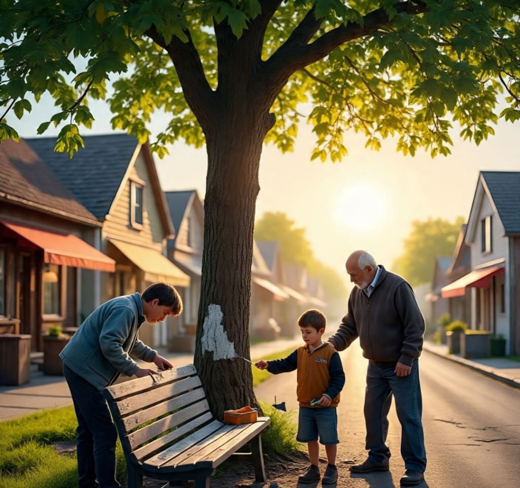 The bench was more than wood and nails. It was where the old men played chess in the evenings, where travelers rested with heavy bags, where children shared snacks after school. It was a place that held many stories, though it could not speak.