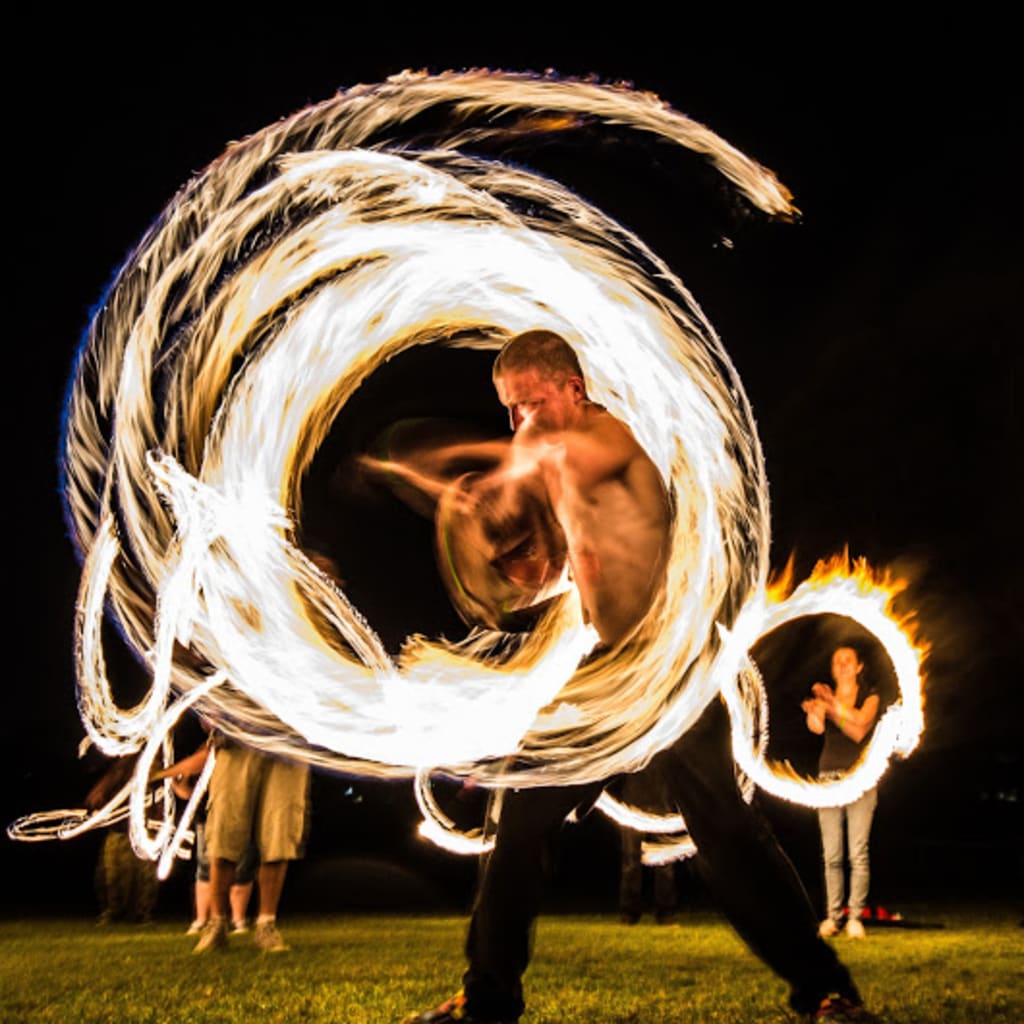 It all started one summer night, with a family walk down at Cronulla beach in the evening, off in the distance, standing in the whitewash, I saw a man dancing around, rhythmically spinning two brilliant flames in the low light, their glowing reflection bouncing off the rolling waves, the same colour and intensity as the sun setting behind them. As we drew closer the smell of kerosene filled my already entranced senses. At the time it was just something that looked exciting and dangerous, which of course as a child I wanted to be a part of. Looking back nearly 20 years later I could have never imagined the profound effect this moment would have on my life, as it was then that I decided I wanted to be a fire twirler.
