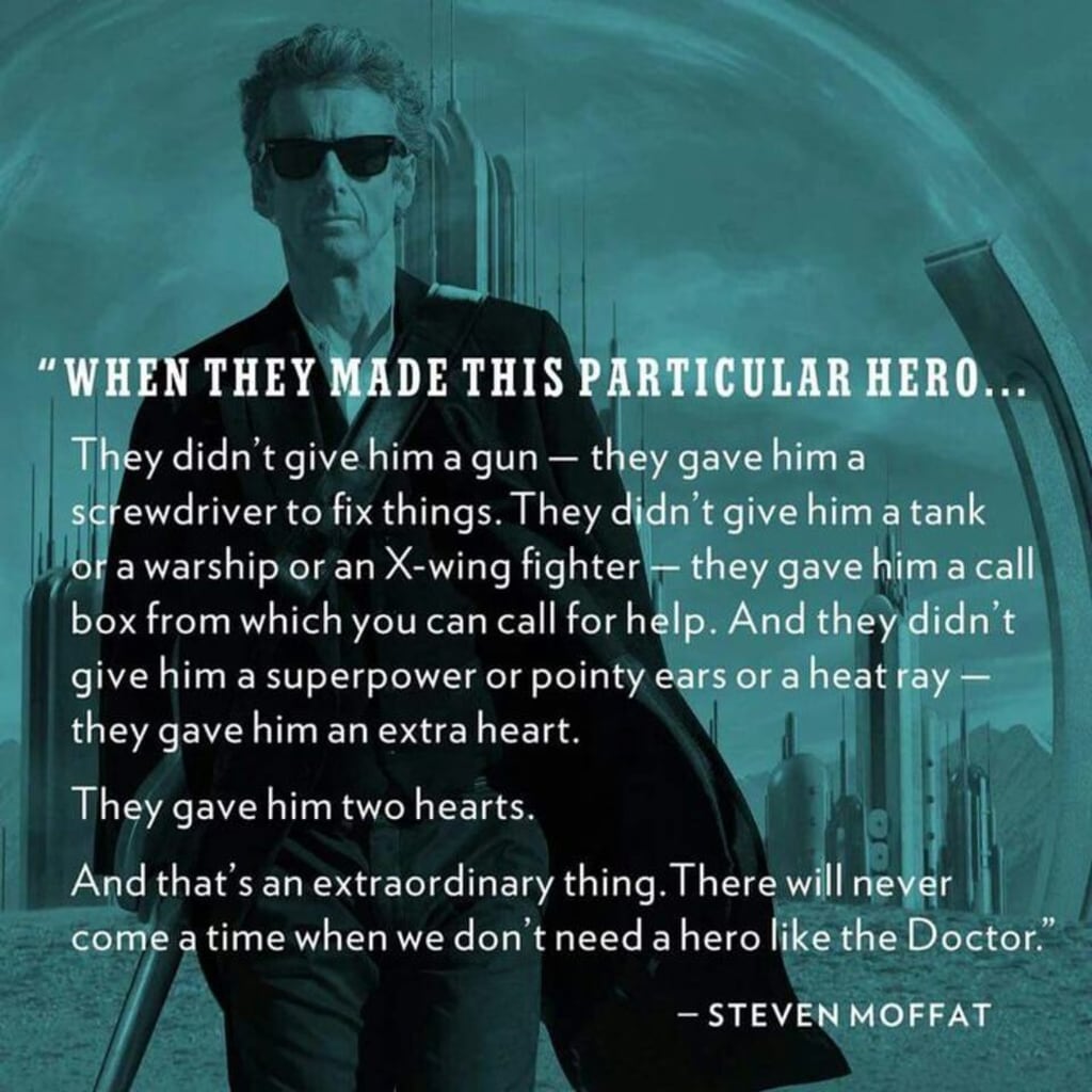 We still have the same problems we've had for generations. And Peter Capaldi, through his take away and his larger than life representation of what it means to truly be kind, and what kind of power kindness has behind it... he reminds me that it's worth what feels like lifetimes of loss and pain - and taking the long way around. He reminds me that no matter the pain we've suffered, change only truly happens through love, mercy, and kindness. And we can either give in to our pain, or we can fight through kindness for a better tomorrow so that our children do not suffer the way we did.