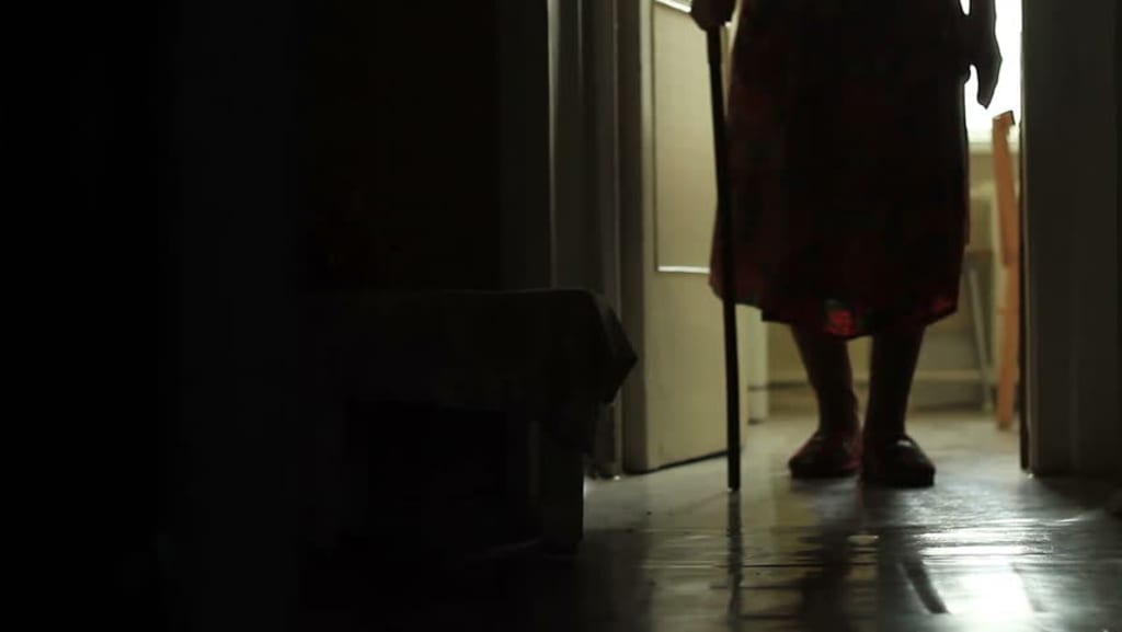 Eade is an elderly lady who is not disabled but has problems with her leg so walks with a cane... She had just returned from spending a month in Thailand seeing her family and friends.