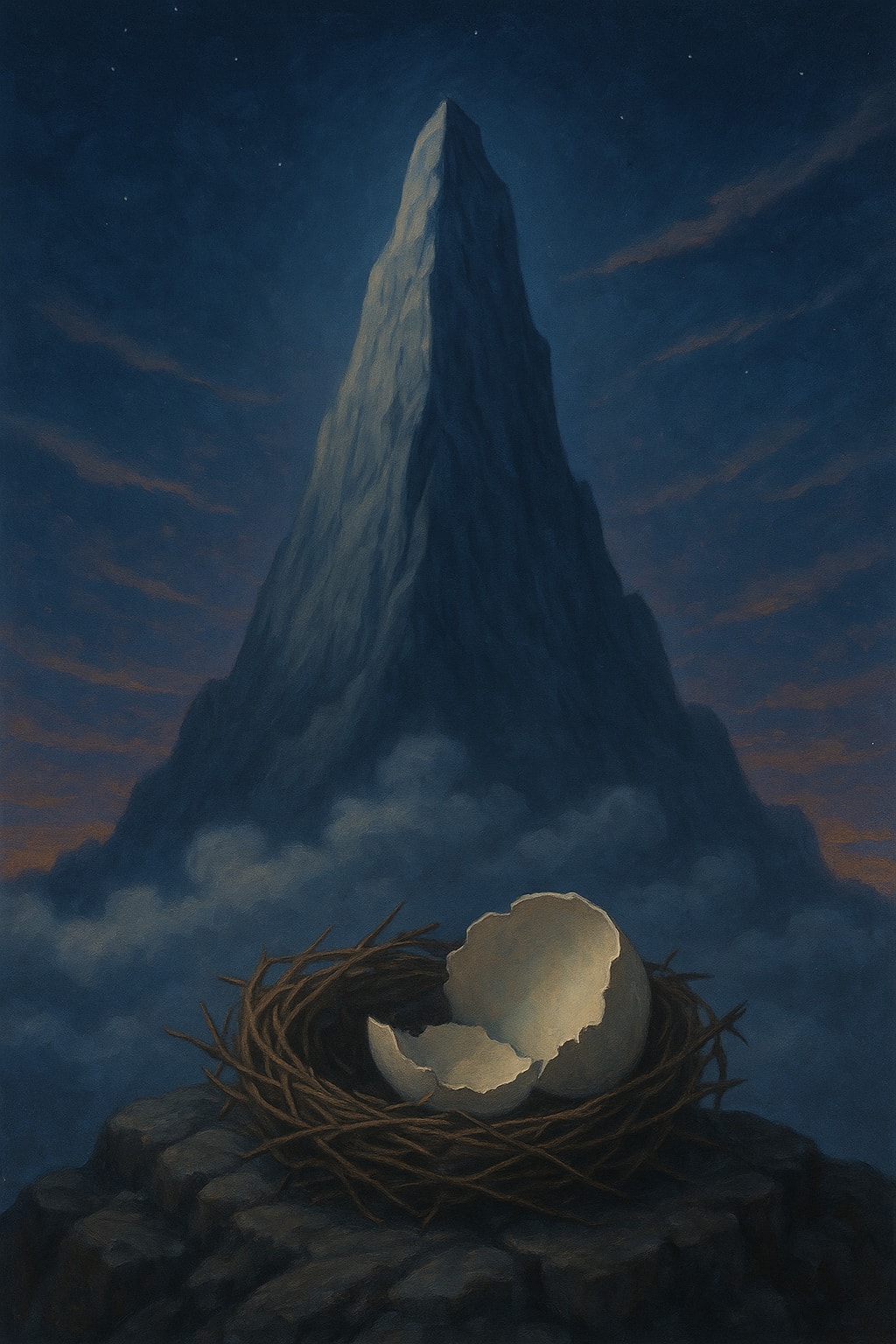 In the vision, the egg shattered—not from birth, but from time. From stillness. From waiting too long. And the mountain was born from that grief—rising up not in celebration, but in mourning.