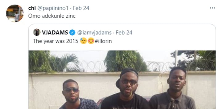 It all started very innocently with a tweet from popular disc jockey, VJ Adams when he tweeted out this picture to his league of 73,000 followers with the caption: “The year was 2015 #illorin”