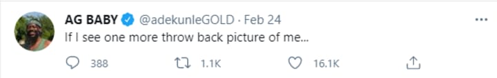 And they did not stop coming. At one point, even Adekunle had to tweet out saying: “If I see one more throw back picture of me...”
