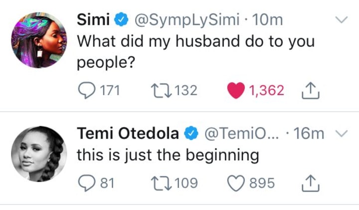 Blame the Twitter algorith. On one user’s Twitter feed, right when Simi tweeted out her post, the next tweet right under it just so happened to be Temi Otedola’s tweet saying, “this is just the beginning” and the way the whole thing just jelled couldn’t be more perfect.