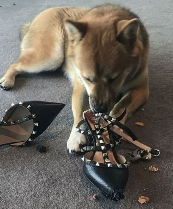 A large thud made her jump, snapping her out of her daze. Peering around the edge of the curtain, she saw the newest member of her family sprawled out on the bathroom floor with the heel of her favorite stiletto between its teeth. Before she could scold and reach for her heel, the pup grabbed its new found treasure and ran out the door, down the long hallway and out of sight. Still dripping, with conditioner in her hair, she jumped out of the shower, and chased after the young pup.