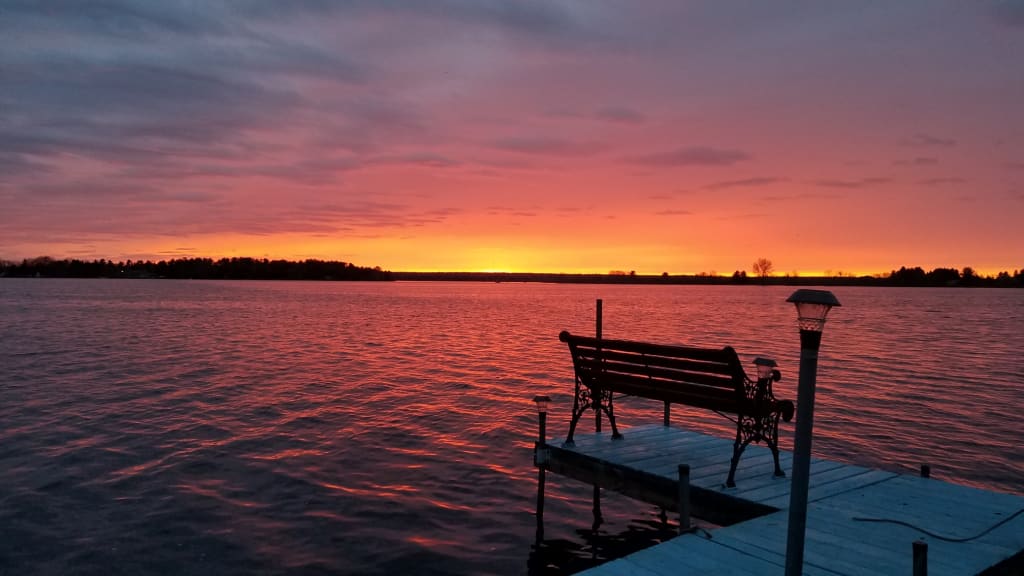 My sister and I look at each other apprehensively. We had been looking forward to the isolation. I step out of the truck on legs wobbly from the hours long drive and gather the pile of assorted items off of my seat and trail after my father. I wait as he unlocks the door. It’s an old wooden door, painted white with an antique looking knocker in the center of it. It almost looks out of place until we step inside and I look around. The door opens into one long room, a small kitchen at the back and a cozy living room taking up the rest of the space. The floors are a thick carpet of red, orange, yellow, and cream patchwork. It summons to mind images of poppy flower fields. A deflating brown couch lines one of the wood paneled walls, a small window above it overlooking the hill that leads down to a shining metal dock at the shoreline. An overstuffed green lazy boy rests beside the couch and sitting opposite the two is a blue and grey plaid rocking chair. There's a decent sized TV on the wall to the left of the couch and strung up above it is a paper banner reading “CONGRATULATIONS ELIZABETH!” in the colors of my school.