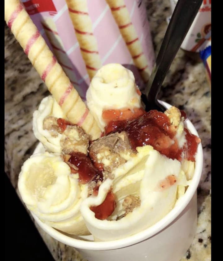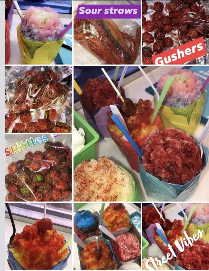 A new rolled ice cream shop in town Street Vibes, opened their doors earlier this year after a crazy summer selling delicious Snow cone boxes! They also make candies and have their own brand of chamoyada rim paste! Every trip inside this family of go-getters establishment is always pleasant. This business has the friendliest faces behind their plexiglass viewing windows. I walk inside and I’m always met with big smiles and friendly greetings. They have a variety of delicious snacks and handmade treats and candies that are sure to please a variety of taste buds. The atmosphere is light and friendly and you can even enjoy a free game of foosball while you wait.