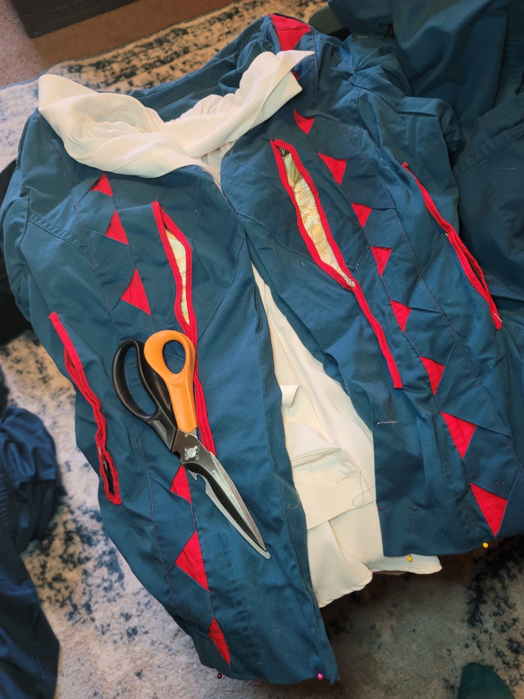 I worked on this particular project alone, as it was during the pandemic, but in the past I have often worked on my repurposed costume projects in the company of friends. I’ve been stopped mid-cut while disassembling old prom dresses or t-shirts to open beers with the bottle opener, or separate the blades to open a box or envelope. And since the scissors came with a sheath that contained a sharpener, it was no problem to run the blades over the sharpener a few times and go right back to cutting fabric. I realize I could just get a pair of fabric scissors that are used for fabric only, but the fact that they can do anything has added to their reputation as an amazing tool.