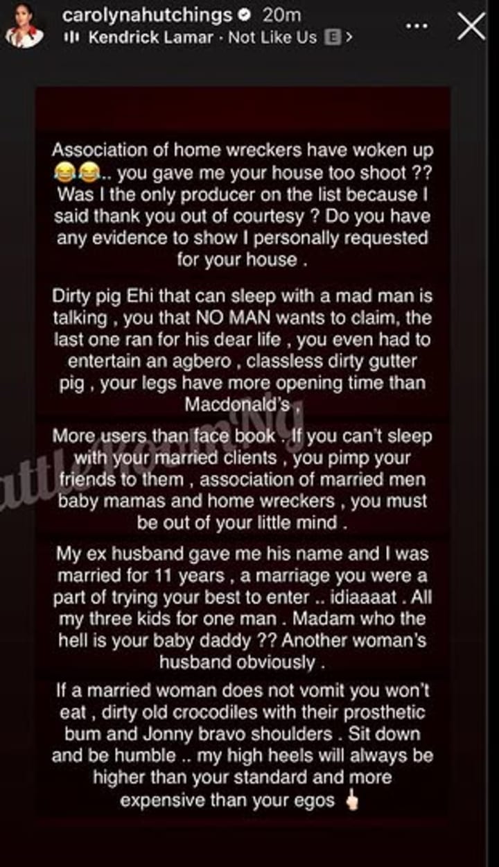 After watching the show, Ehi heard Carolyna's comments and went IN on her. Ehi said in a video published on social media: