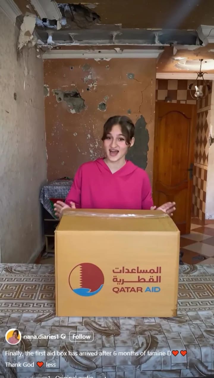 Instagram users regularly see unboxing videos, with many teens Abu Hashem’s age opening packages, containing treats, or expensive gadgets. In Nana’s case, she was supposed to start the tenth grade this year, and she decided to use the familiar format to showcase items contained in a typical aid package [occasionally] distributed in Gaza.