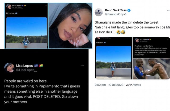 She used her own language from her country, her own dialect and was bullied so badly she made her Twitter account private, after she deleted the Tweet. Because deleting the post wasn't enough, Ghanaians continued to attack her, mocking.