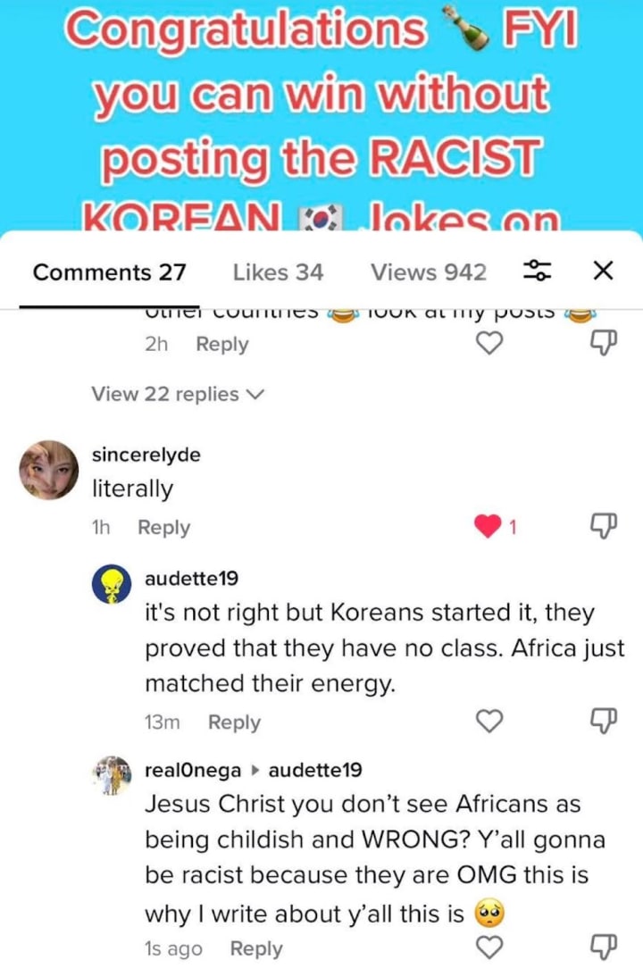 Ghana won the match 3-2, from there the mocking via social media became much worse. I posted the score, with the words congratulations. The TikTok was seen by a little over 3,000 people, from there the insults started on me. I was called a racist, you're one of them, it went on and on.