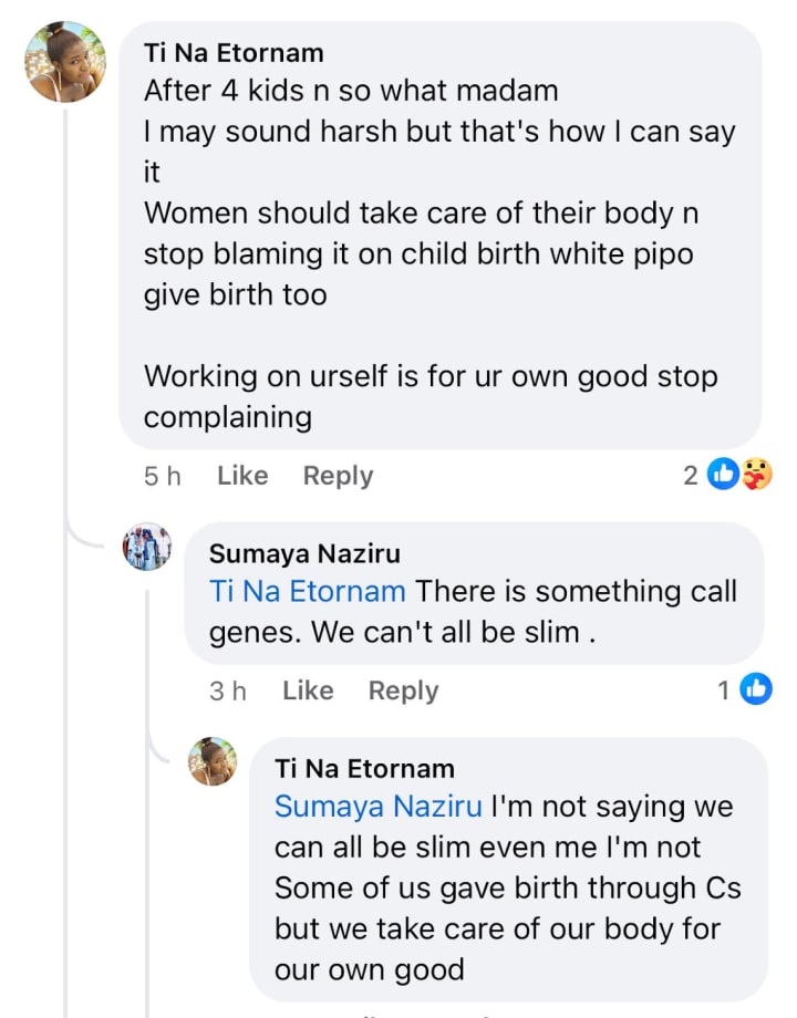 In the video Ghanaians told the dancing woman to go to the gym, in this post from a married woman in a Ghanaian Women's Confession group, they did the same. This is a group, for women to share their issues, mostly all are about relationship issues.