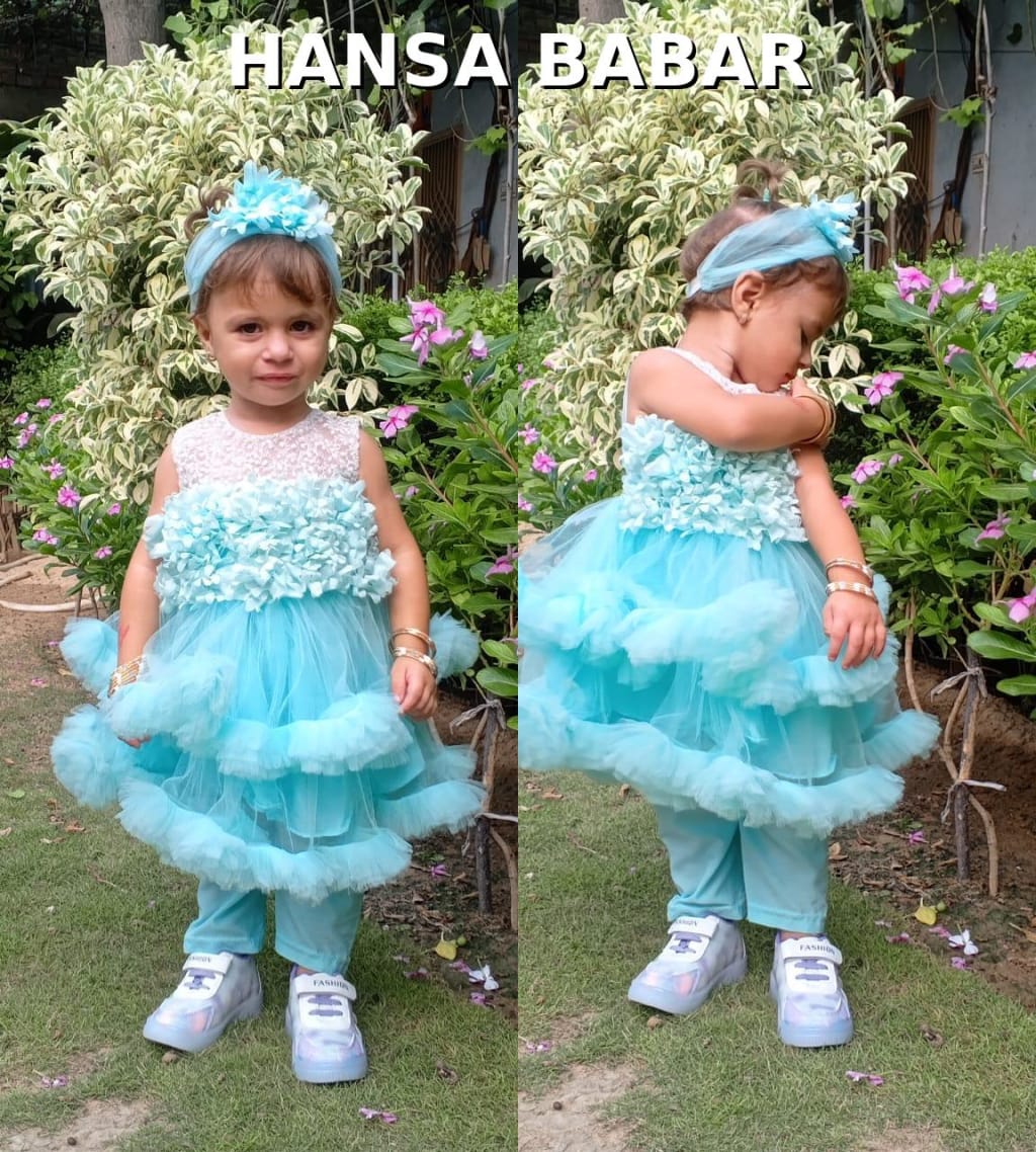 She wore a frilly turquoise dress layered with tulle, a matching headband that framed her small face, and bright sneakers that made her look both playful and regal at once. On her wrists, tiny bangles clinked like whispers of celebration. But nothing in her attire compared to the radiance of her smile.