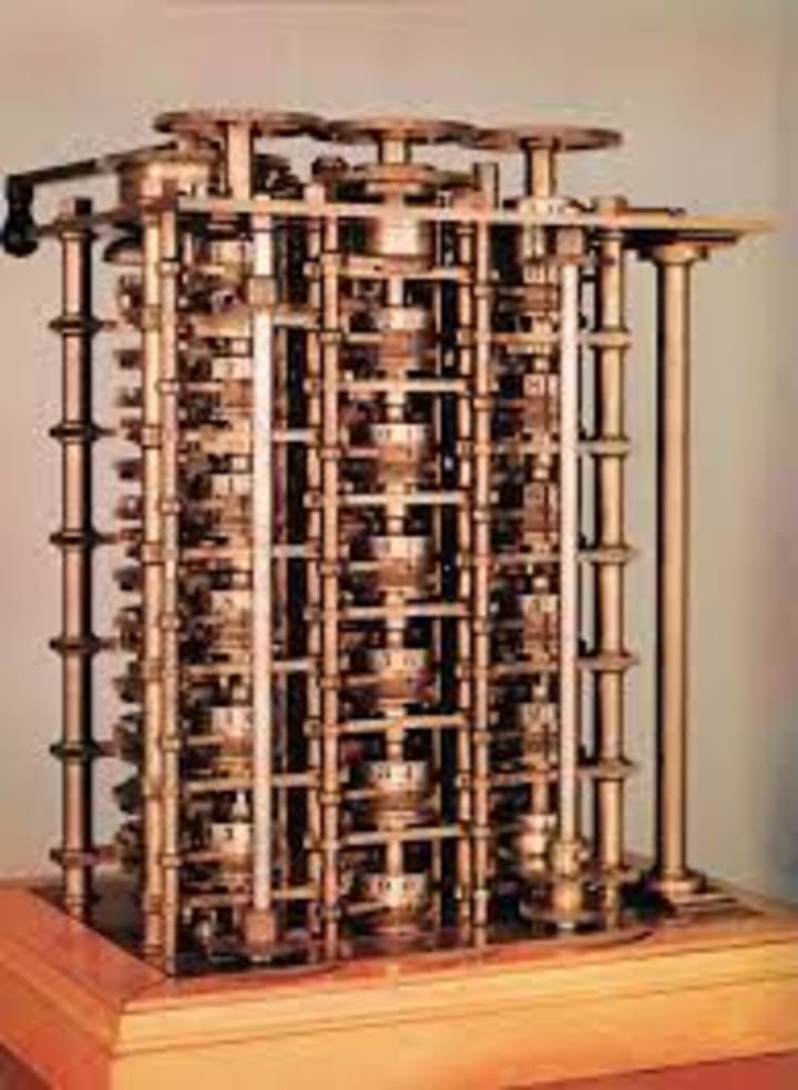 Charles Babbage was an English mathematician and mechanical engineer. He is known as Father of Computer because he developed first complete computing machine. His first invention was Difference Engine. It was an automatic mechanical calculator. It was a large machine made up of metal and powered by steam. Difference Engine had storage (mechanical memory) that could hold data temporarily for processing and to store results. It was able to generate print results of performed calculations.