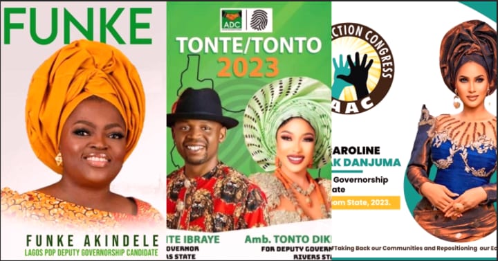Right now, moreso than ever, we have a number of Nigerian entertainers who are vying for political seats of power. We see actress Funke Akindele running for the position of deputy governor of Lagos State. Tonto Dikeh is running for deputy governor of Rivers State. Carolyna Hutchings is running for deputy governor of Akwa Ibom State. And these are just the three of the top of my head.