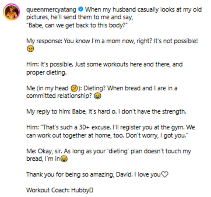 What do you think about Queen's post? A number of people have supported and praised the post for offering a glimpse into her lighthearted and supportive relationship with her husband saying that it’s not just about fitness but also about how couples can motivate each other in a positive and loving way. However, there are others who don't like that a husband is sending his wife pictures of her old body and saying she needs to get back to that weight.