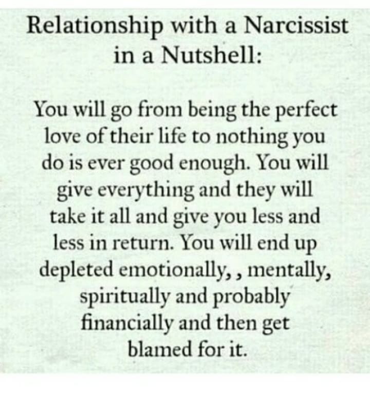 If you've never been involved with a narcissist it's impossible to even fathom or imagine the psychological damage that they can do to someone.