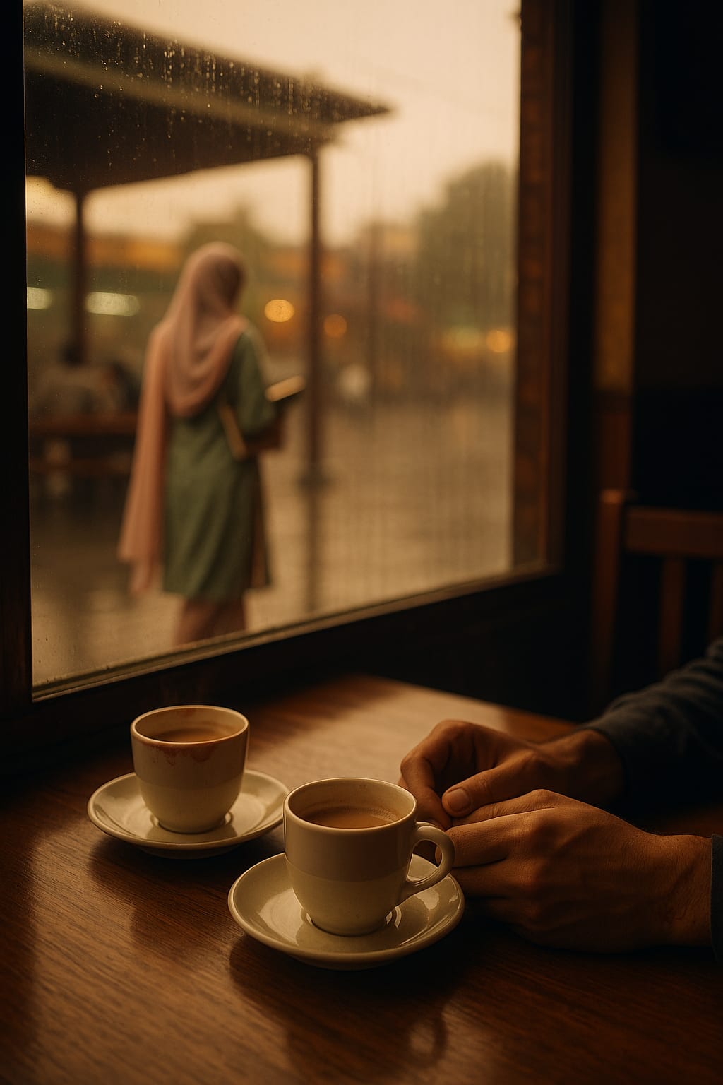 We were sitting in a chai dhaba near F-7. It was raining lightly, and she had henna stains still fading on her hands from a cousin’s wedding.