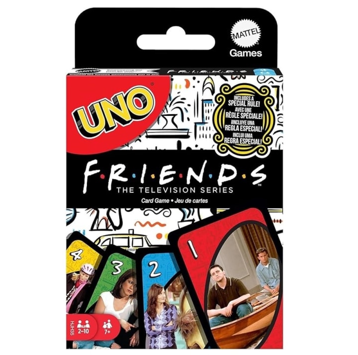 Finally - an UNO game that lets you PIVOT! from fun to furious in 2.5 seconds flat! The Mattel Games UNO Friends Edition combines all the backstabbing joy of classic UNO with your favorite Central Perk regulars.