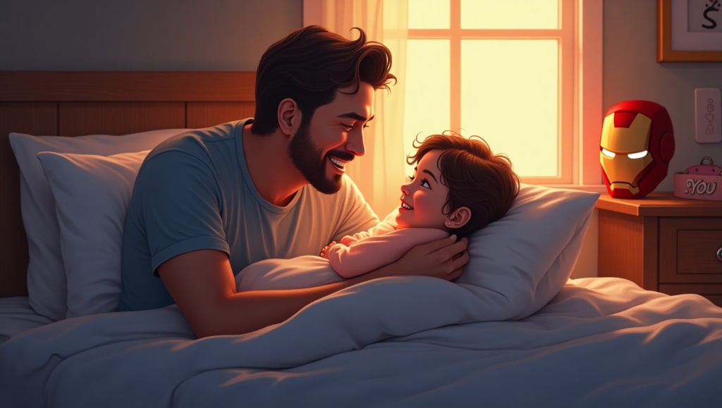 Bedtime Scene: Tony tucks Morgan into bed and says, “I love you tons,” to which she sweetly replies, “I love you 3000.”