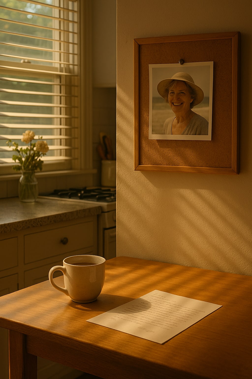 One year after she passed, I stood in that same kitchen from my dream, holding a photo of us at the beach. She was wearing a sunhat and laughing—truly, deeply laughing.