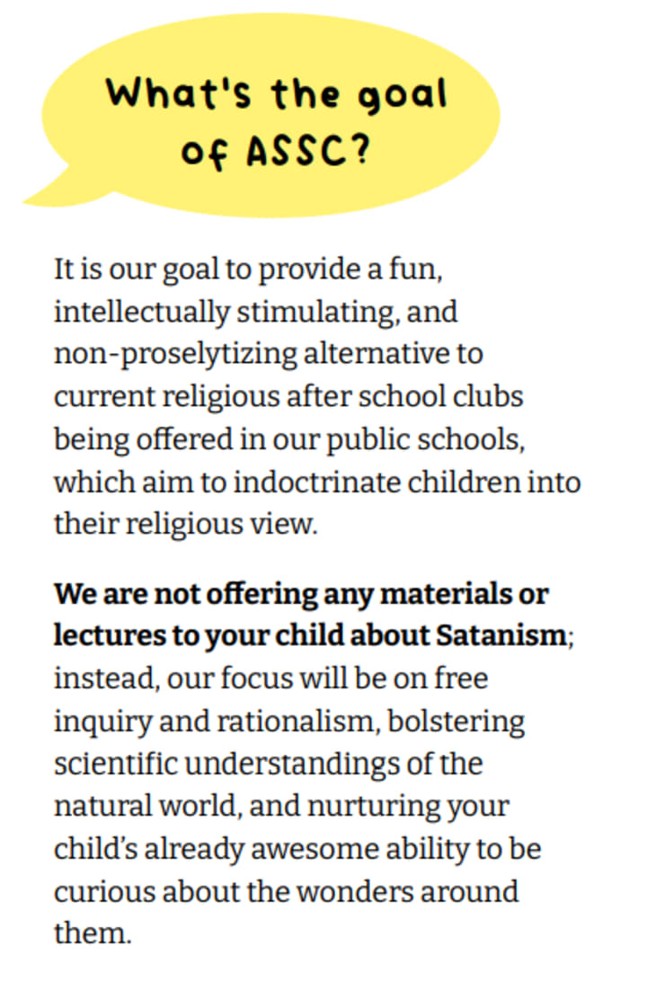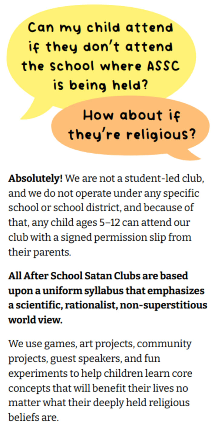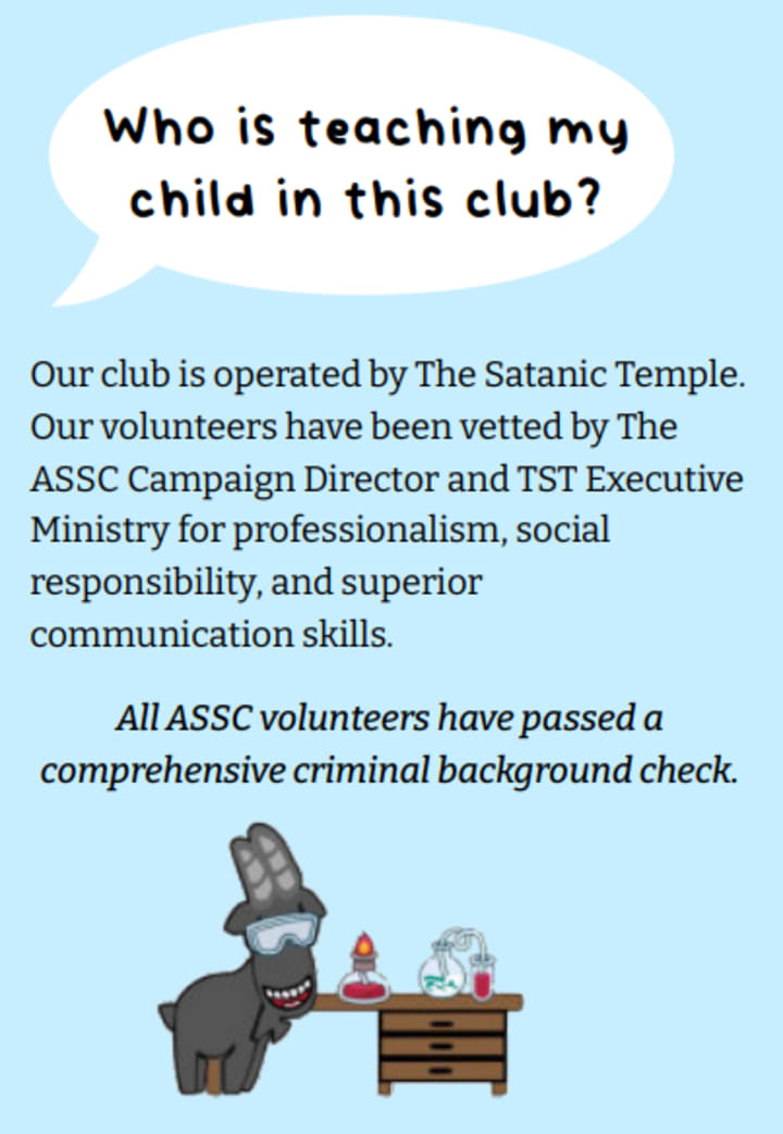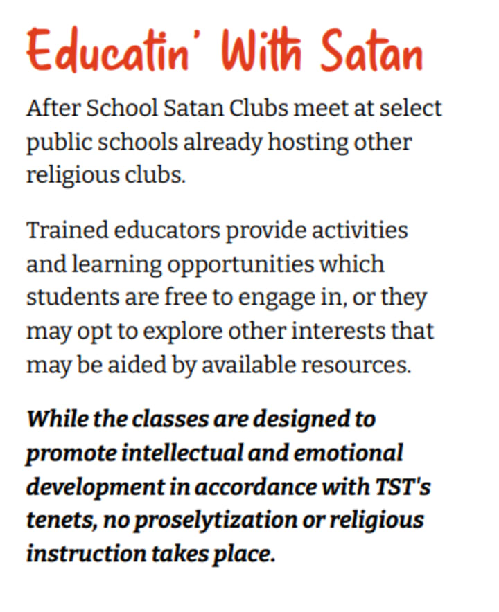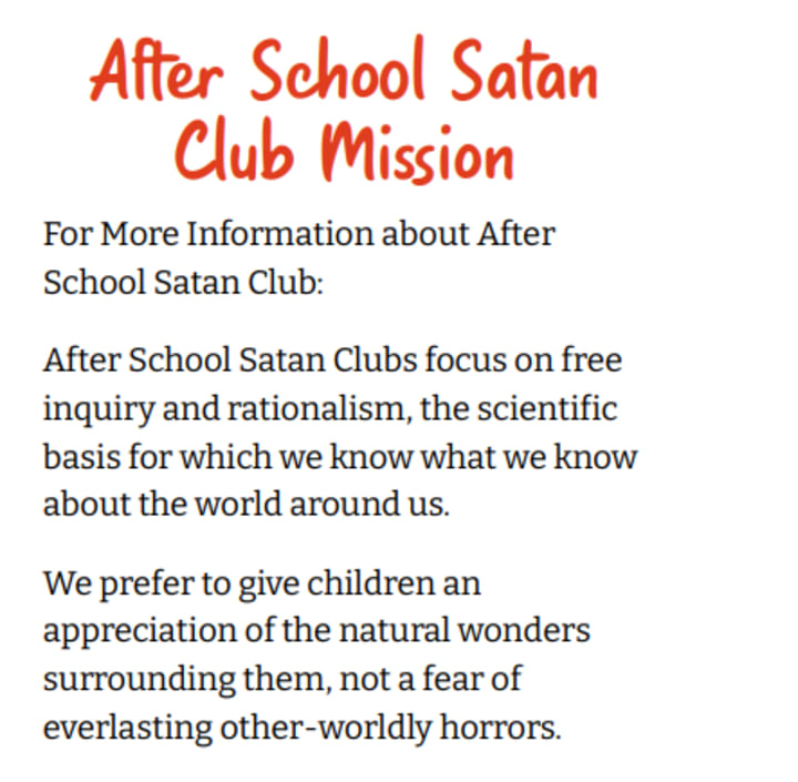 So... In other news, Pennsylvania recently got its first "After School Satan Club", (ASSC) courtesy of its parent movement, The Satanic Temple (TST).