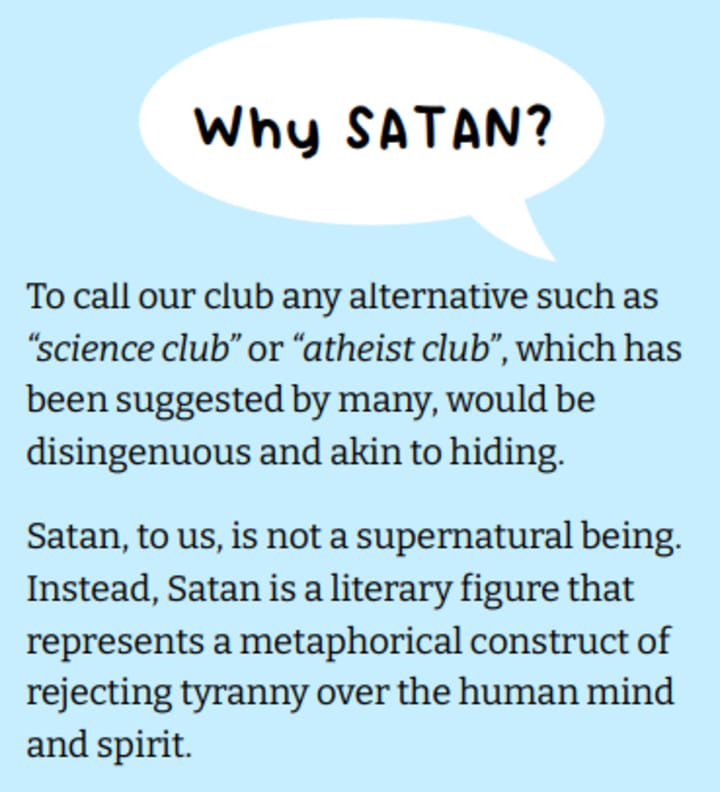 But ASSC says that Satan's not a bad guy. In fact, he's not even real.