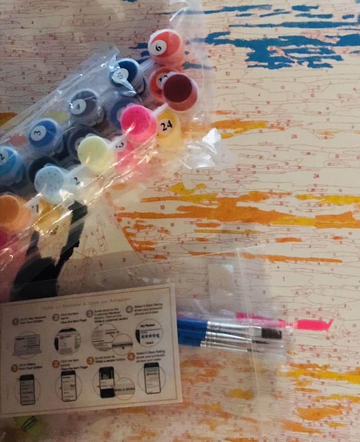 My new art adventure agenda also includes a lovely DIY acrylic painting. I found this beautiful sailboat kit painting on Amazon and it was a true game changer. I got everything I needed in the kit. Paintbrushes, paint, and the paint by number canvas on a wooden frame ready to put on my wall.
