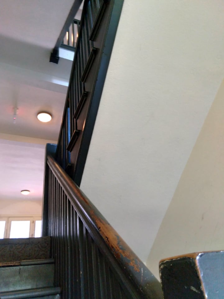 After a long, hot walk, one afternoon I wandered through the courtyard behind my apartment building and headed up the back stairs. I love the old-fashioned atmosphere in the stairwell; it makes me reminisce about my grandparents and relatives long past. I brings a kind of calm over me.