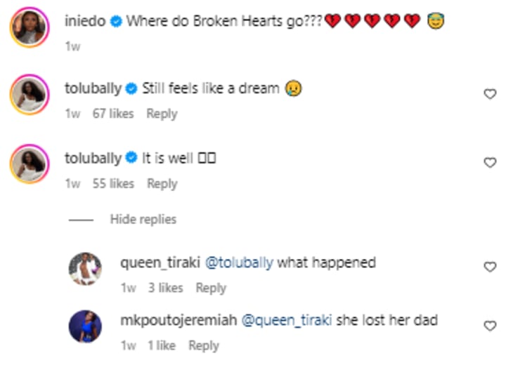 Well, at this time Ini Edo herself has not confirmed anything, but according to reports and comments on social media, it seems like Ini Edo may have allegedly lost her dad according to reports.