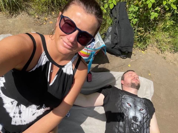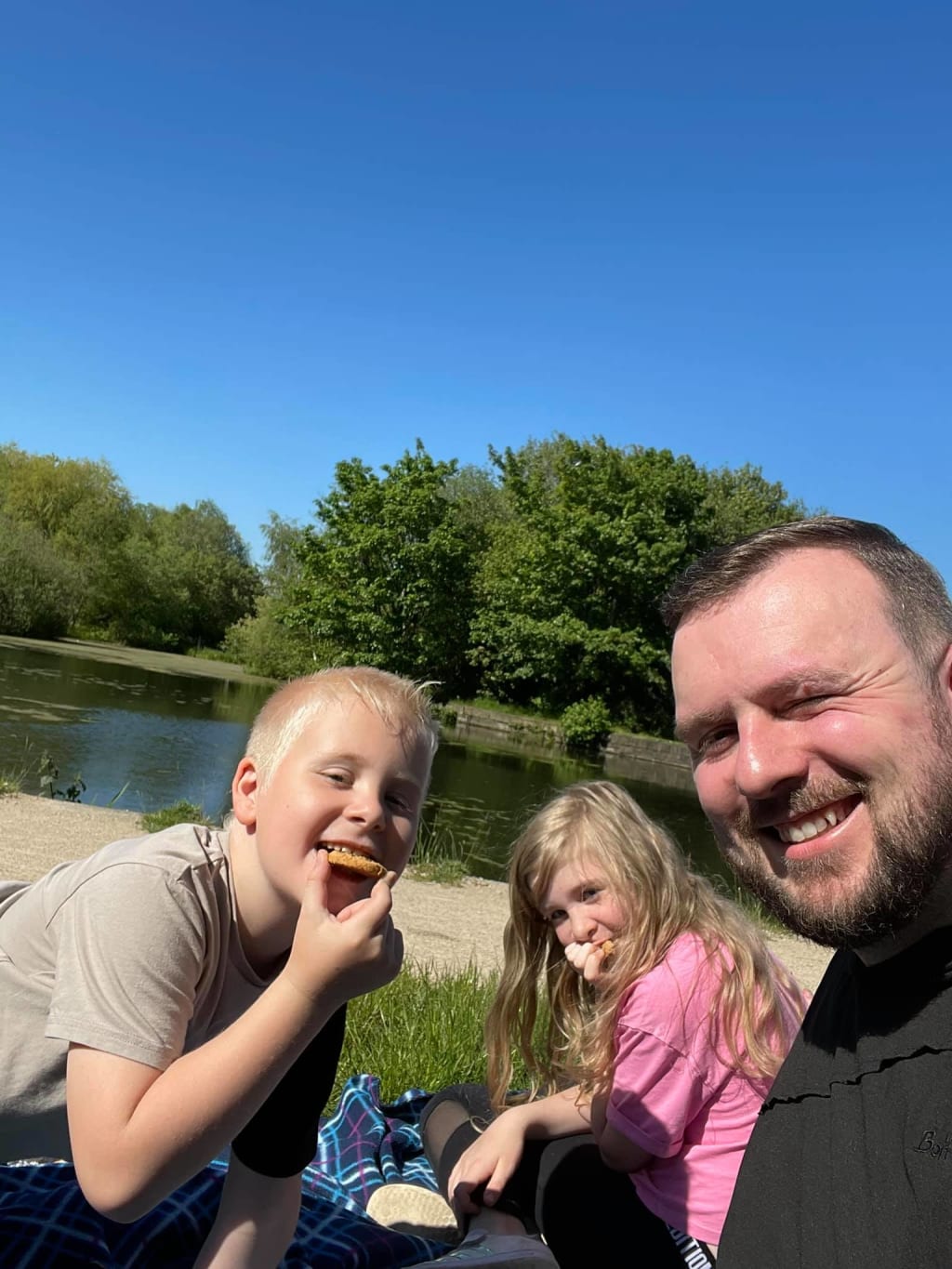 Content with my miniature feast, I look around to see the love of my life (whose addiction to the sun would put a drug addict the shame) already lying down soaking up more heat than a roast chicken. Another glance and I can see my children, impervious to the barrage of sweltering rays as they dart around the field acting out whatever random scene they have concocted in their amazing imagination.