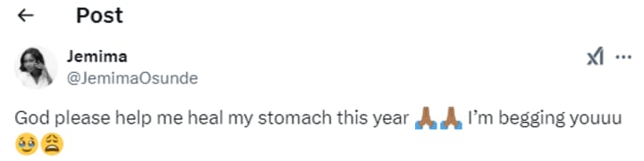 JEMIMA OSUNDE: God please help me heal my stomach this year 🙏🏾🙏🏾 I’m begging youuu