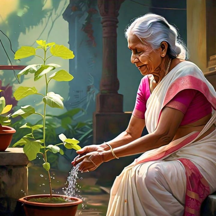 The Tulsi plant is said to be Goddess Lakshmi herself in plant form—Vishnu’s wife and the bringer of wealth and grace. Having it close keeps you tied to that divine energy.