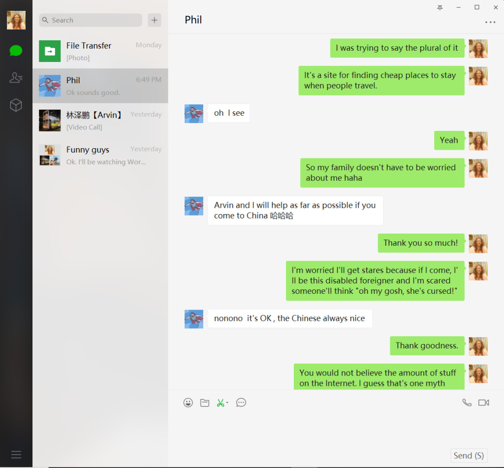 Being friends with someone from China also lends you a few more open doors, including culture snippets, linguistic hacks, and more friends. Of course, one must still be careful when making friends on the Internet, but you can get really lucky if you know who you're talking to. I made friends with Arvin through an app and that carried on through WeChat.