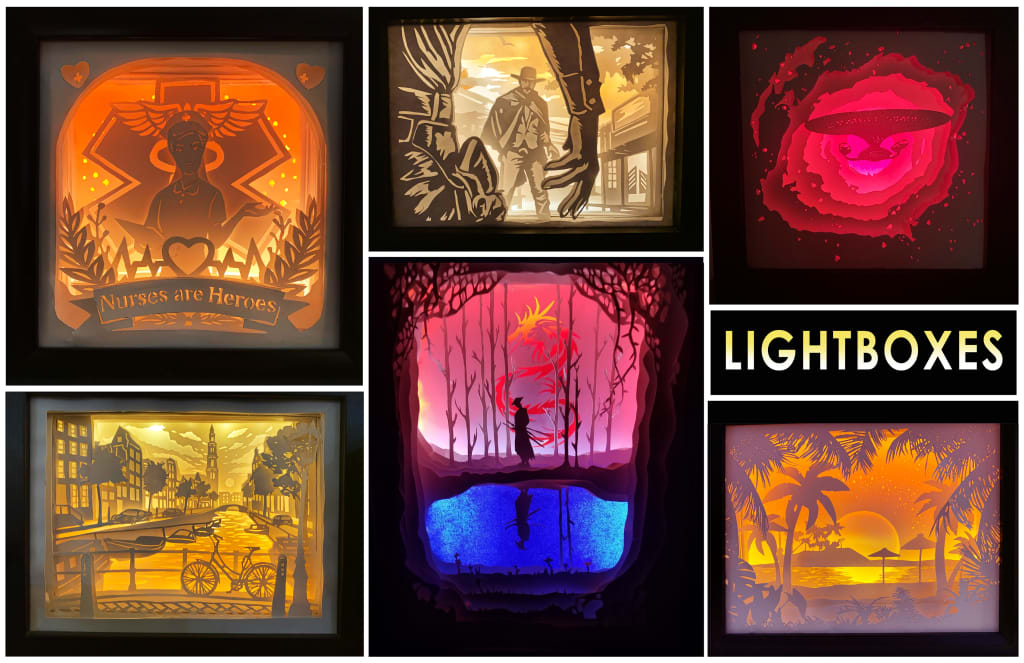 As soon as I’m finished, I’m already looking for the next project. Searching for the next world to cut into layers, assemble and illuminate to life. Making lightboxes brings me a sense of calm and peace I cannot find elsewhere.