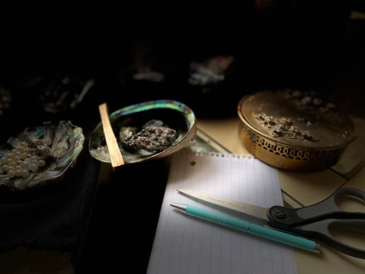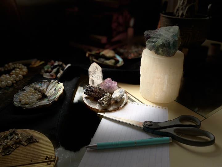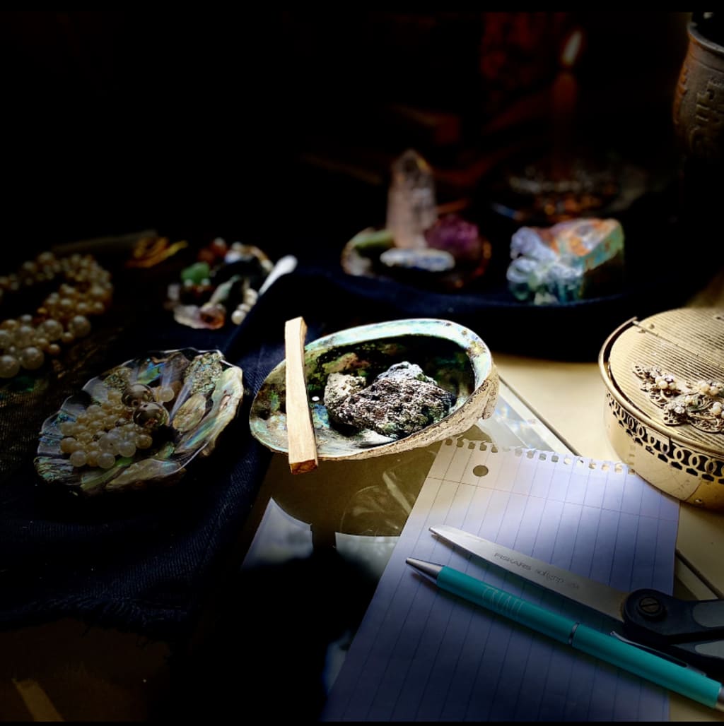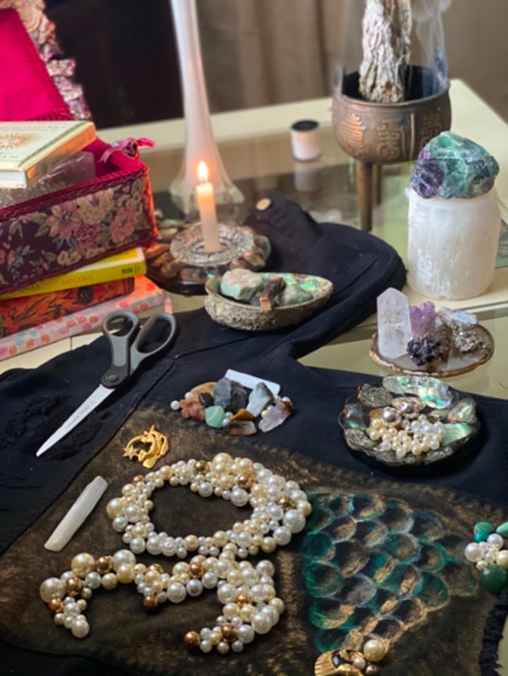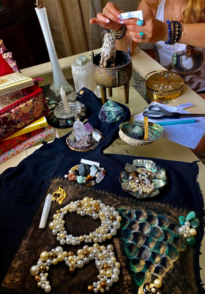 My sacred ritual has become my own version of therapy. I light a white candle, say a prayer, surround myself with my crystals, write down my affirmations, cut them into slim strips, and take a piece of my special thread that I only use for this purpose—and physically cut the cord.
