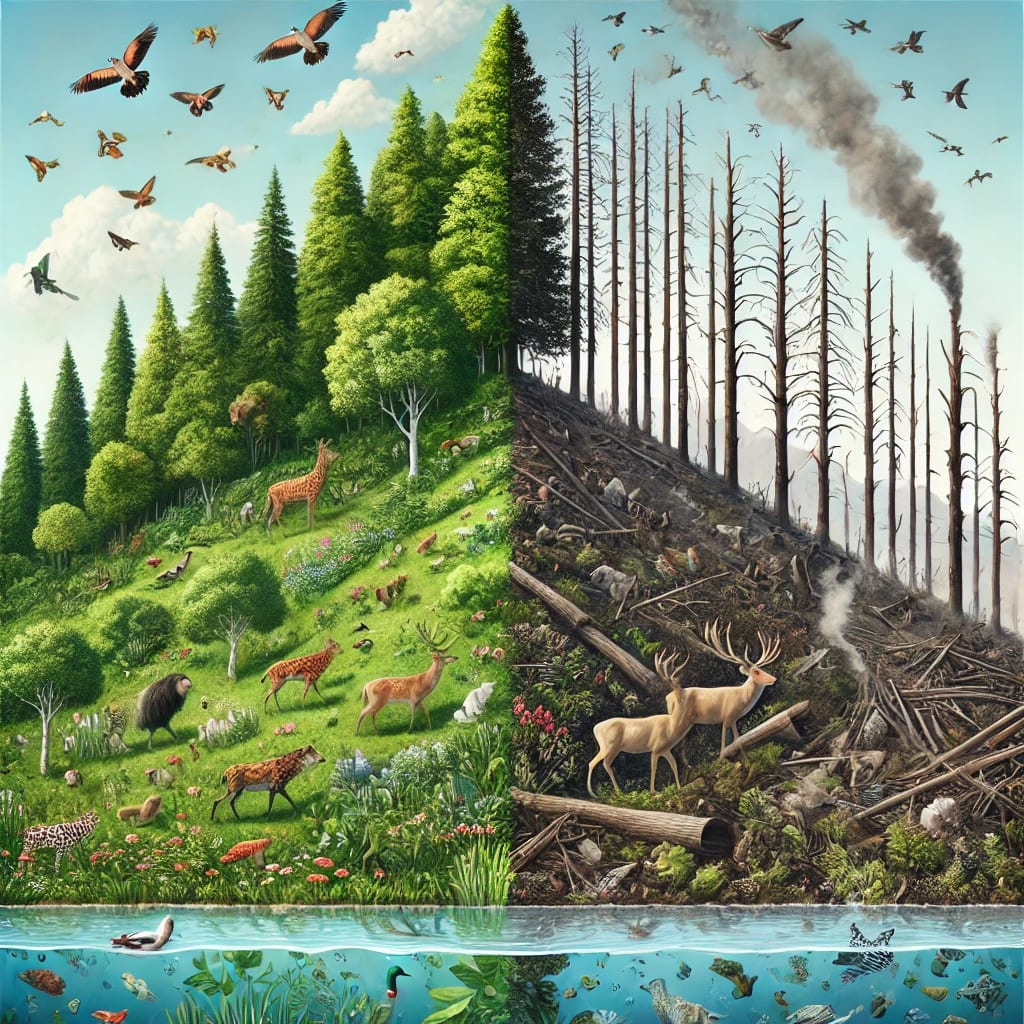 2. Overexploitation of resources: We are taking more from nature than it can replenish. Overfishing, hunting, logging, and mining are depleting the Earth’s resources at unsustainable rates. For example, overfishing has led to the collapse of many fish populations, while illegal wildlife trade is driving species like elephants and rhinos to the brink of extinction.