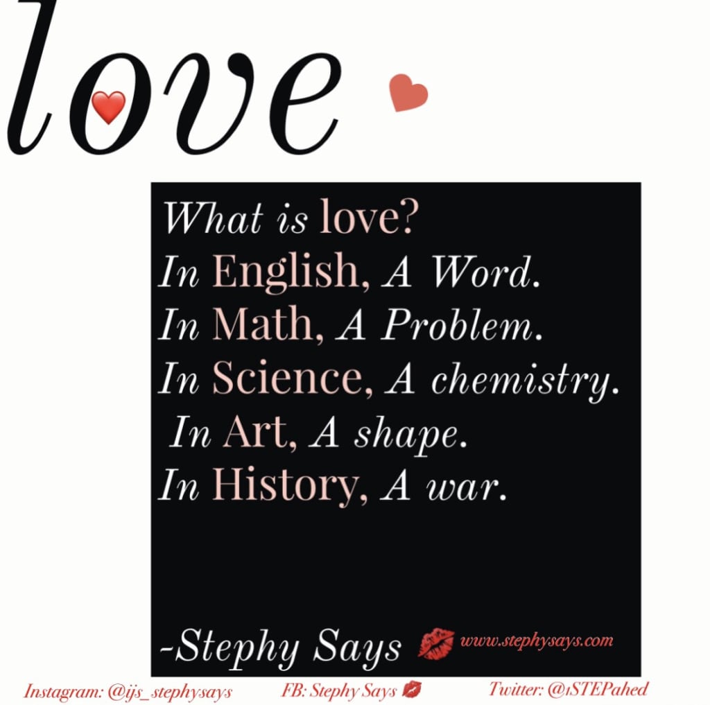 There was a point that I was spending time looking for love, but nothing ever worked. I guess it could best be described as, 2 souls searching for the same love, but coming from 2 different backgrounds. I’m sure it would be safe to say that they all loved me, just not in the way I knew love; yet, I’m led to believe that they loved me the best way they knew how. Their versions of love was both accepted and appreciated. However, I had to learn that it’s possible for someone to love me to the best of THEIR ability & it still not be all the love I deserve. Let’s continue with my lesson number 3.