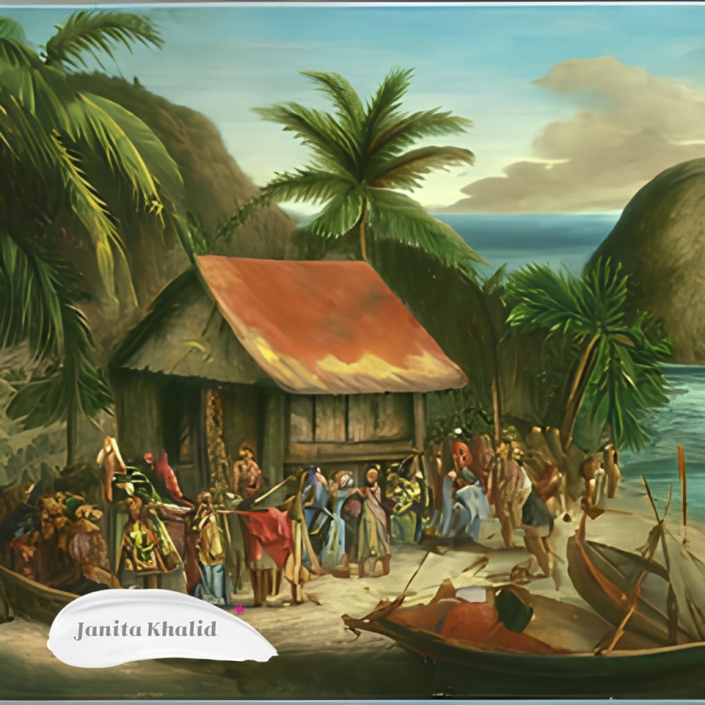 As the ship docked on the shore, a group of travelers disembarked. They were dressed in rich fabrics and adorned with jewelry, and they spoke in a language the islanders did not understand. But they smiled and gestured in greeting, and the islanders felt their fear begin to dissipate.