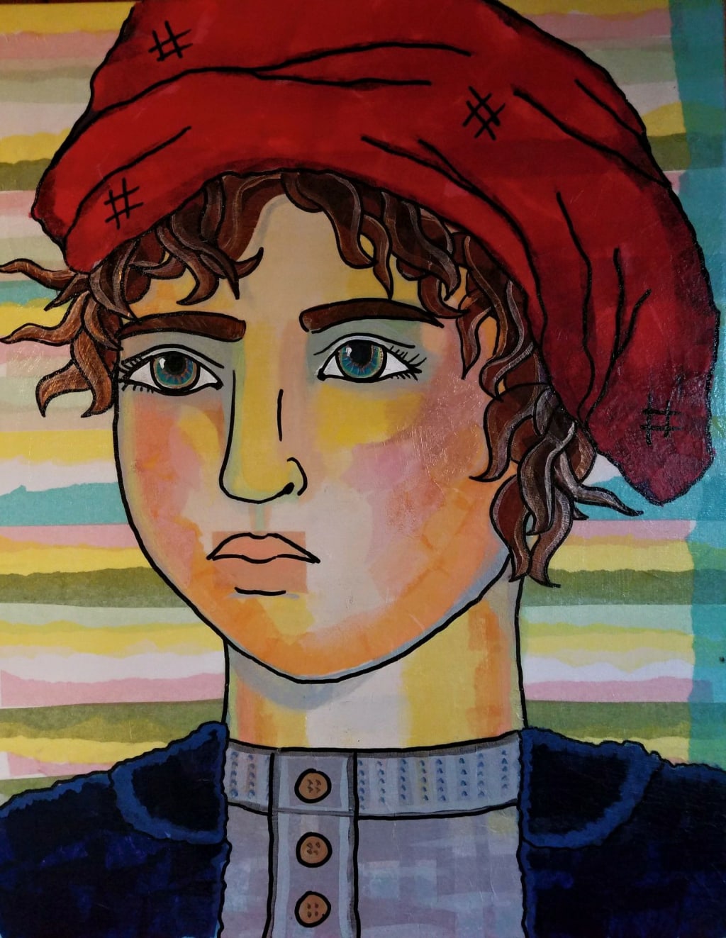 I quickly fell into the somewhat meditative practice of meticulously cutting and tearing hundreds of small bits of tissue paper and collaging them together with modge podge. I explored creating portraits using entirely square pieces, or circles. I played with cutting out intricate designs – almost like delicate paper snowflakes – to create intricate textile patterns. I loved the way the colors would blend and change as they were placed on top of one another. I especially loved playing with muted pinks, yellows, greens and blues to somehow result in a beautiful rainbow skin-tones. Most of all, I loved using paint pens at the very end. Adding a simple black line would suddenly bring a portrait to life. The before and after was like a blurry photo coming into focus.