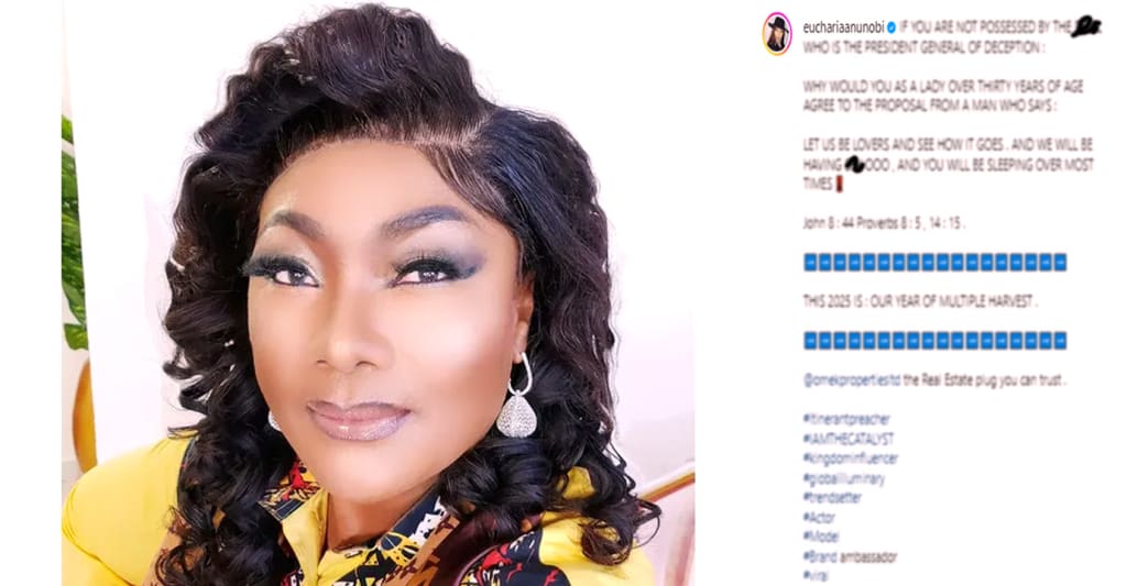 Nollywood actress and preacher Eucharia Anunobi is here with another marriage counsel and this time its specifically geared towards women over 30. In her writeup, Eucharia advised women against words they should run away from hearing from romantic partners; and explained also through social media what she believes marriage should be about. Here's what Eucharia Anunobi had to say.