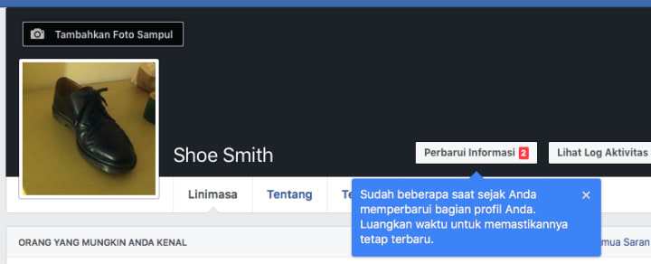 Then we had some issues. For some reason those bureaucrat pigs at FB are iffy with people who have single names. Sure, they make exceptions for the likes of Beyonce and Madonna, but the Shoe didn't have the same profile apparently. I googled "how to make a single name on Facebook." Google told me to use a basic version of the Facebook website, where everything was in technicolour and when you logged out you had to sing the national anthem. Google then told me to change the language settings to Indonesian. At this point, Google may as well have told me to go fuck myself. I learned the Indonesian for "like," but still couldn't work out how to change the Shoe's name. It was going to have to stay as "Shoe Smith."