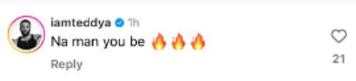 Reacting to the pictures, Big Brother Naija alum Teddy A had to comment saying "Na man you be" while actress Eniola Ajao wrote saying "Congratulations darling 🥰🥰"