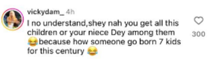 Of course the presence of the children wasn't missed and somebody commented saying "I no understand, shey nah you get all this children or your niece dey among them because how someone go born 7 kids for this century"